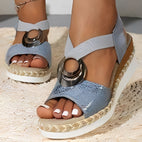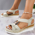 Diese Keilsandaletten glänzen mit ihrem zeitgemäßen Design und der bequemen Passform. Die Keilabsätze sorgen für stabilen Stand und einen modischen Auftritt. Hervorragend kombinierbar mit Kleidern, Röcken oder leichten Sommerhosen. Hochwertige Materialien garantieren anhaltenden Komfort. Ideal für besondere Anlässe oder den alltäglichen Sommergebrauch.