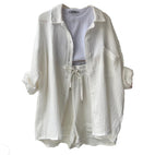Unser Sussie - Baumwoll-Overall für Damen ist perfekt für diejenigen, die Komfort ohne Stilverlust bevorzugen. Hergestellt aus hochwertiger Baumwolle, ist dieses lässige Pyjama-Set so konzipiert, dass es Sie den ganzen Tag frisch und entspannt hält. Das Oberteil mit Reverskragen verleiht dem Gesamtlook einen Hauch von Eleganz, während die Shorts einen verspielten Look haben, der perfekt für den Sommer ist.