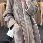 Der Suzanna Cardigan überzeugt mit seinem langen, offenen Design und einer fließenden Form, die feminine Eleganz ausstrahlt. Das weiche, angenehm zu tragende Material sorgt für höchsten Komfort – ideal fürs Büro, die Freizeit oder entspannte Momente zu Hause. Dieser wandelbare Cardigan harmoniert wunderbar mit Blusen, Tops oder Kleidern und verleiht jedem Outfit eine elegante Note.