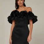 Waverly - Schulterfreies Satin-Kleid mit Rüschen