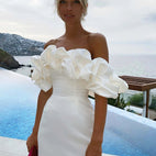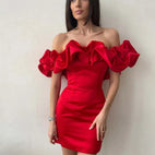 Attraktives Design: Das schulterfreie Design und die feinen Rüschen geben dem Kleid eine charmante Note, die Ihre Schultern und Ihren Hals elegant hervorhebt und Ihnen einen femininen Stil verleiht.