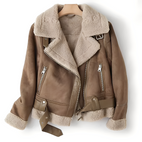 Die Jacke „Yasmine“ vereint den entspannten Motorrad-Stil mit gemütlicher Wärme. Sie hat außen weiches Wildleder und innen wärmendes Lammfell. Diese Jacke bietet Stil und Bequemlichkeit für kalte Tage. Der auffällige Reverskragen und die Motorrad-Details geben ihr einen zeitgemäßen Look. Perfekt für Frauen, die einen warmen, robusten und zugleich stilvollen Begleiter möchten.